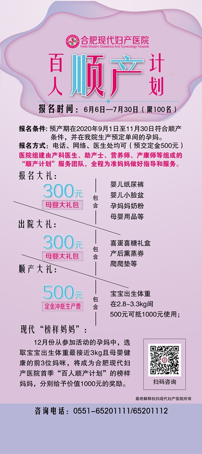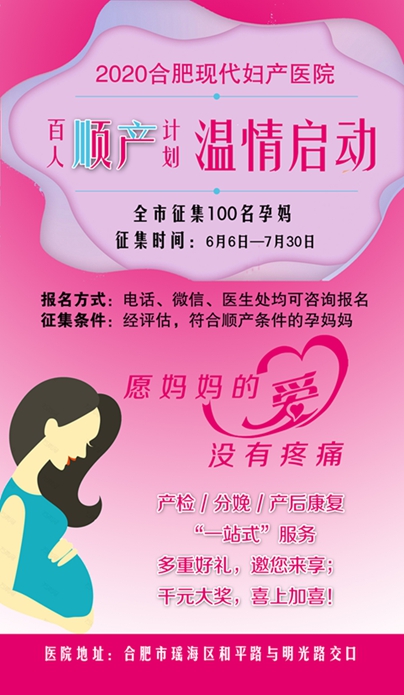 2020年合肥现代妇产医院百人顺产计划6月6日温情启动!