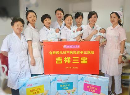 这是合肥现代妇产医院产科迎来的首例三胞胎,他们的顺利降生,体现了我院妇产、手术、麻醉及护理团队高超的技术,和医护人员对产妇视如亲人的天使情怀,同时也为我院建院11周年增添了一抹喜庆的色彩。