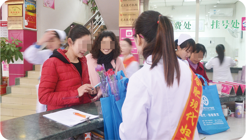 我院隆重推出的“爱在三月·女性健康关怀月”活动,点燃女人节,为春天揭幕。三八节当天,虽然天公不作美,飘着冷冷细雨,却无法阻挡女性朋友追求健康和美丽的脚步。我们为她们准备了精美的礼品套装,和实惠的健康关爱套餐,并向所有住院的女性朋友们献上了美丽的康乃馨和温暖的节日问候。