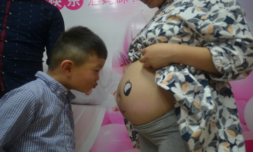 接下来的活动内容就是肚皮彩绘了。准爸妈们充分发挥自己的想象和灵感,构思出各种可爱的图案,有的是一张栩栩如生的笑脸,憨态可掬;有的活泼调皮,准爸爸和他们的大宝们也积极主动地参与进来。在准妈妈的要求下,准爸爸的肚皮上也绘上了图案。拍照时,大宝们亲吻着妈妈的大肚子,画面温馨,流露出对未出世的弟弟或妹妹的爱护之情。